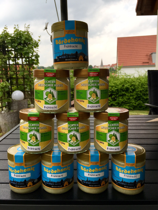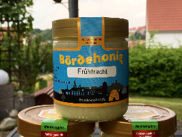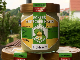 Frühtrachthonig erhältlich im altbewerten Deutschen Imkerbund Glas ( kurz DIB Glas)